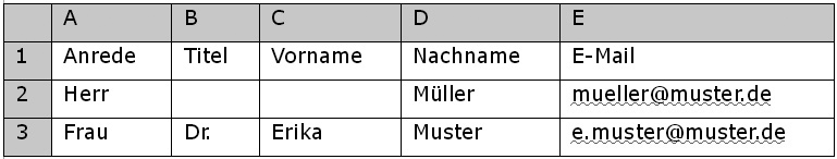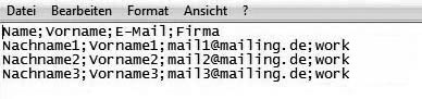 Maybe you have already collected email addresses to which you want to send a newsletter. No matter in which database these information are stored – you only need to save them in a CSV file (for example with Excel) and import them 4SELLERS Mailmanagement System. You can pack your CSV file as a zip to accelerate the uploading of large files. That's how it works:In the first line of the table, there should be field names – first name, surname, email address etc. An example: |