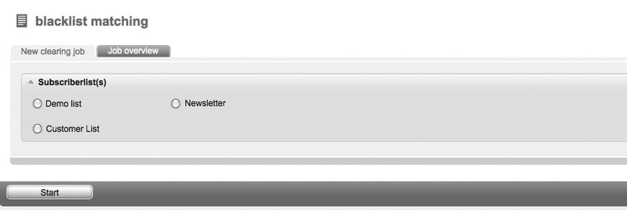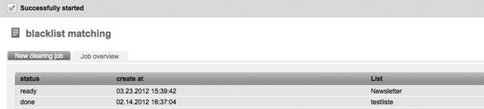 | You will find information on the blacklist and its function in 2.11 Blacklist. Via the function 'Blacklist matching', you can coordinate the data records of your subscriber lists with the entries in your blacklist. Detected subscribers will automatically be deleted by 4SELLERS Mailmanagement System. First, you have got to choose the subscriber list which has to be examined. By clicking the 'OK' button, you will confirm the appearing message to delete the search results. The result will show you how many subscribers were removed due to the fact that they are registered in the blacklist. |