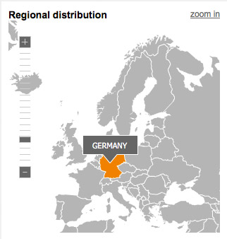 4SELLERS Mailmanagement System generated based on the IP addresses of subscribers an overview of the 'local distribution'. If openings were counted in one country, this will be color coded. By clicking on the country a magnified view appears and cities become visible as points. The larger the dots, the more Openings were counted in this city. Move the cursor over an item, you see the Openings to the location. The data relate to the unique Openings (unique).
