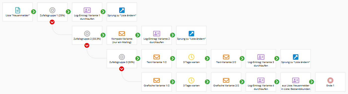 - Jeder neue Abonnent (Liste 'Neuanmelder') betritt die Kampagne.
